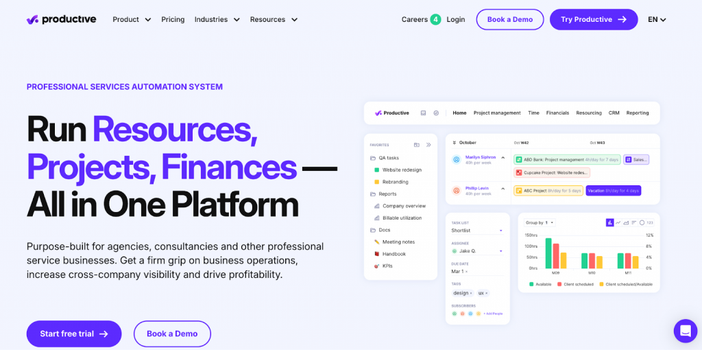 | 3. | Productive | Teams looking for combined project management, budgeting, and time tracking in one tool | Monthly: $9 per user per month Yearly: $11 per user per month Enterprise: Contact the team |
